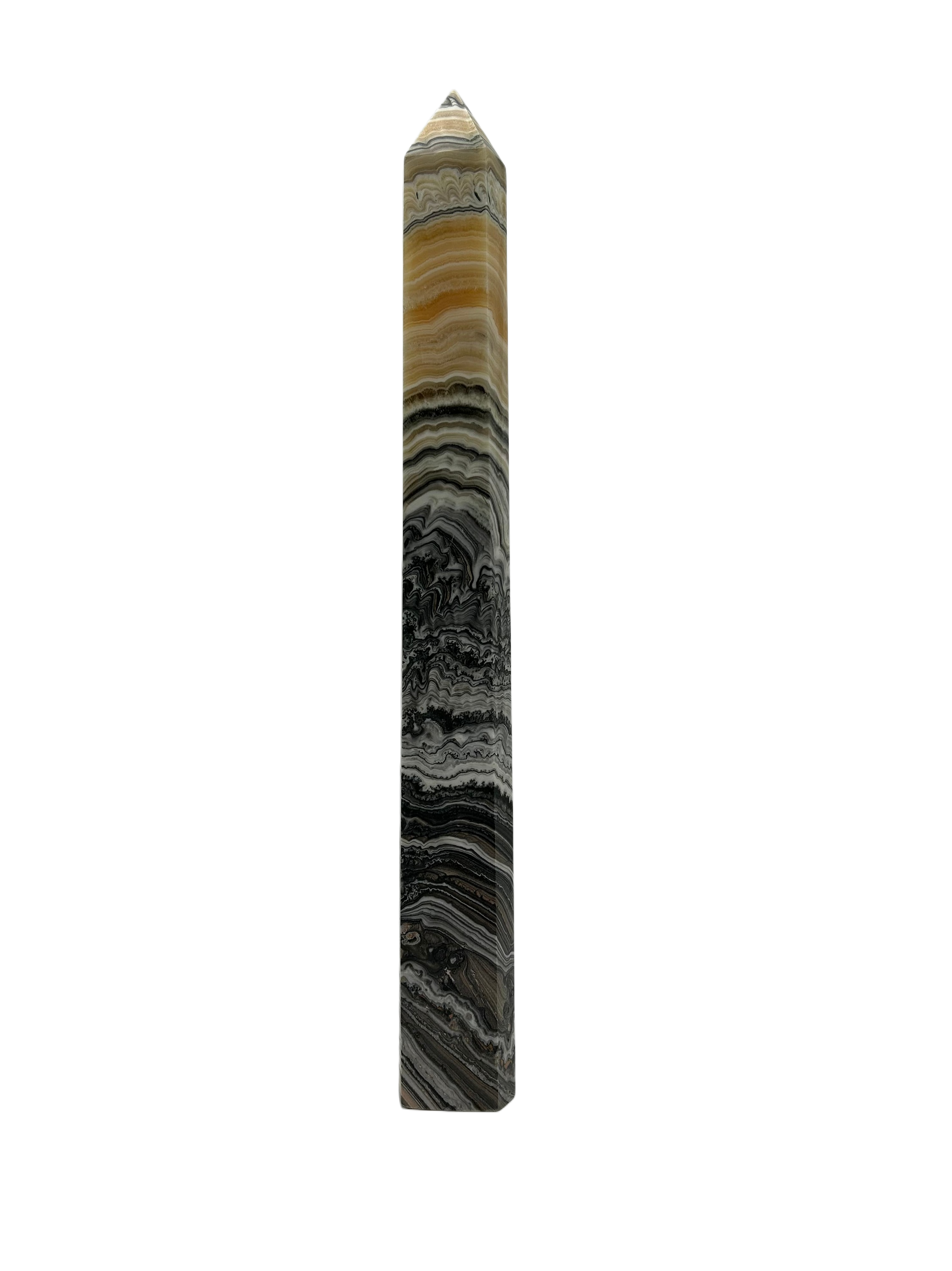Jetzt gestreiften gelben Calcit Obelisk kaufen und Deine Kristallkraft aktivieren!